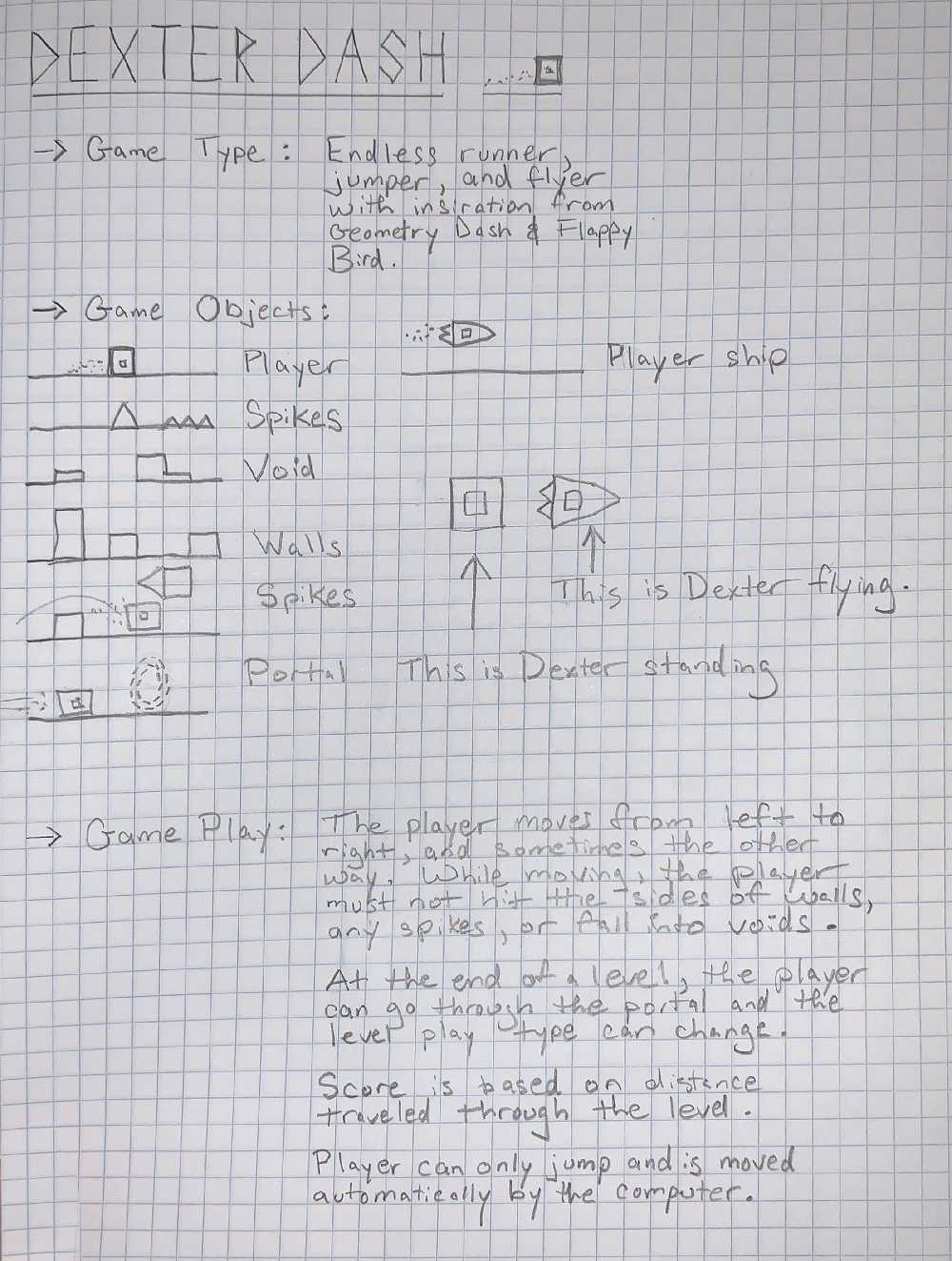 DEXTER DASH is an side-scrolling runner, jumper, and flyer with inspiration from Geometry Dash and Flappy Bird.