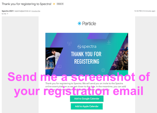 Send me a screenshot of your registration email!
